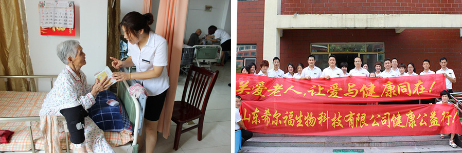 山東希爾福生物科技有限公司成立之初就把回報(bào)社會(huì)、弘揚(yáng)中華民族尊老愛老的傳統(tǒng)美德做為己任。